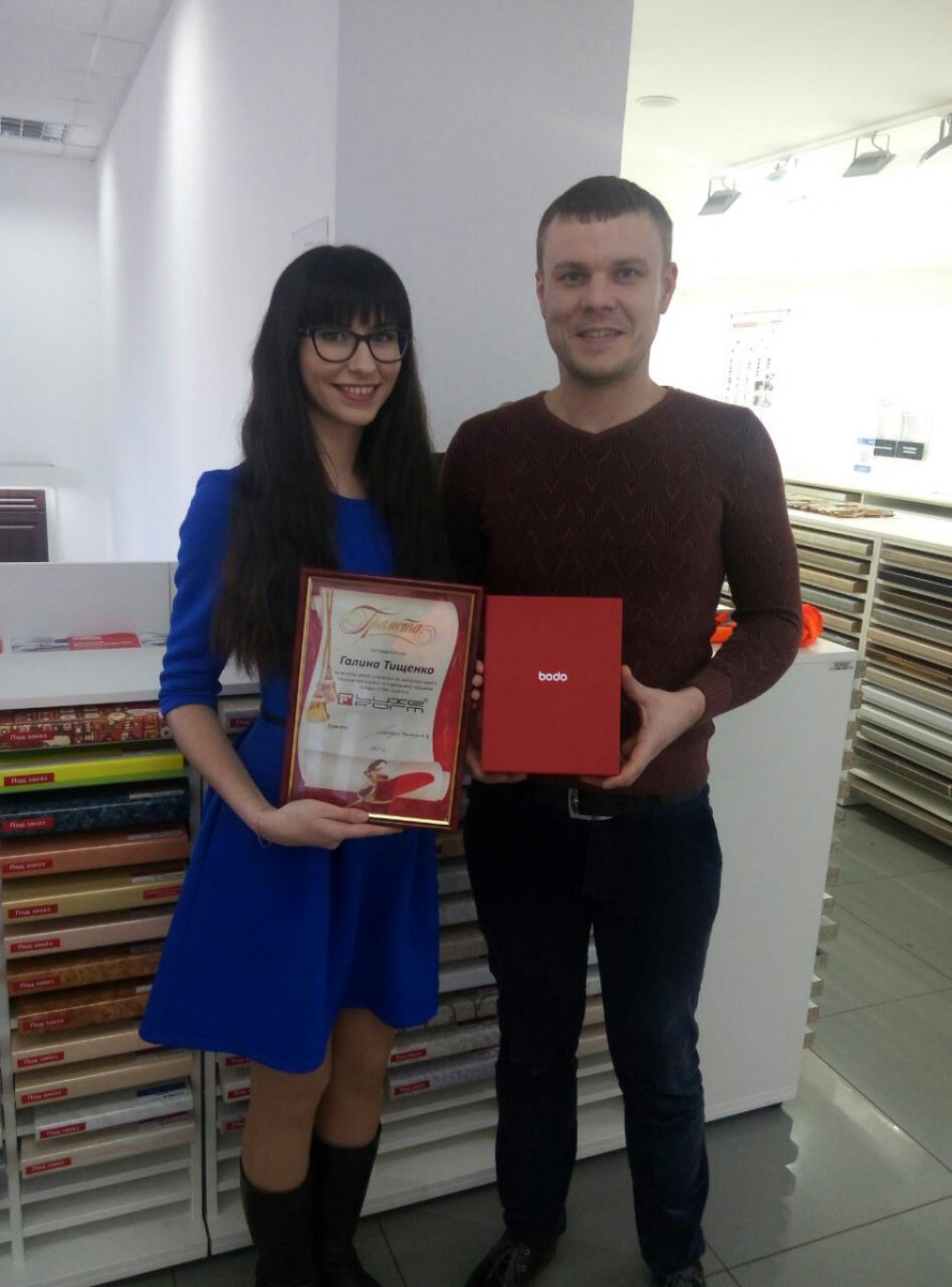 23-го февраля был вручен приз за активное участие в конкурсе на лучшую идею по улучшению сервиса и увелечению продаж Галине Тищенко. Благодарим за участие!