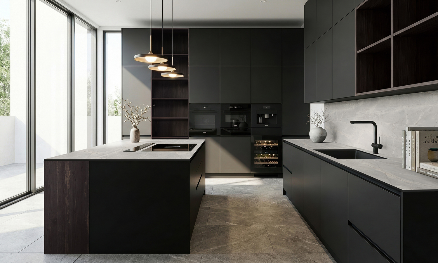Уявіть кухню або простір, де кожна поверхня виглядає цілісно та гармонійно: